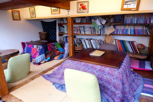 もちろんカフェなんで、予約なしでも空いてればご利用できます。来店時こたつが埋まっていても、席移動のご希望をお伝えして頂ければ空き次第ご案内します。こたつ席はやぐら上に2つ、やぐら下に2つの計4つあります。
