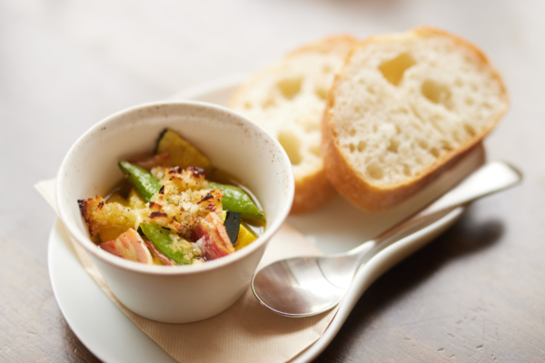 「アヒージョ~季節の有機野菜入り~ バゲット付 900」