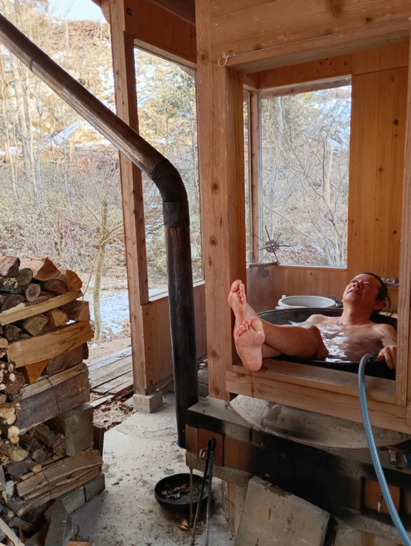 というのも月とカヌーさんとこにかなりのボリュームを予定しておりました関係で、お邪魔した日はお手製の五右衛門風呂を味わせて頂きました。驚いたのは至近の温泉の泉質と似ていたんです!湧き水もいわば天然水、柔らかくてph高めと温泉ソムリエのティスティングノートは評価したのです。