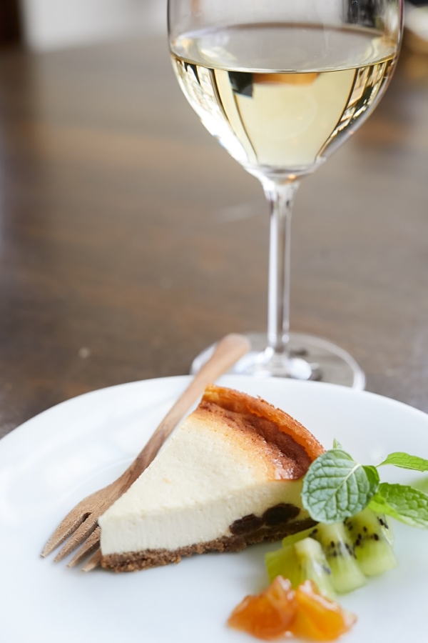 ワインに合うおつまみとして最適な「チーズとドライフルーツの盛り合わせ」やオーガニックサラダやパスタ、カフェらしく、白ワインとベイクドチーズケーキがセットになった「大人なケーキセット」もありますので、こちらも人気でオススメです。